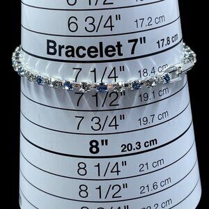 ✨ Add sparkle to your wrist or someone else's this holiday season with this dazzling Swarovski Crystal Tennis Bracelet, crafted with alternating blue and clear round-cut crystals. Set in 20 mills silver plating, this 7¼ inch bracelet shines beautifully in every light, offering timeless elegance and a touch of color.