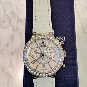 Swarovski Crystal Watch. Excellent condition. White crocodile embossed leather strap. Quartz mechanism. Made in Switzerland.