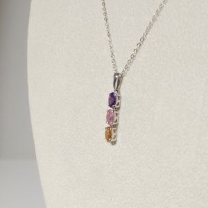The beautiful genuine Swarovski cubic zirconia crystals evoke the colored gemstones amethyst, pink sapphire, and amber.