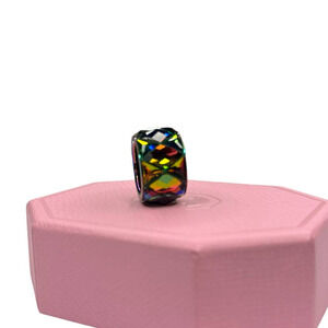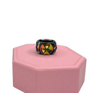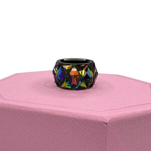 A cocktail ring that sparks the imagination: this vibrant multicolored design is crafted with tessellating triangle cut crystals to create its three-dimensional effect. Complete with a wide iridescent band, you can wear it alone to showcase its complexity, or stack it with other rings from the Curiosa family. This ring is part of the Curiosa family, designed by Creative Director Giovanna Engelbert for Collection I.