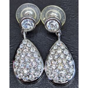 Swarovski Earrings, Pavé Crystals, Teardrop Dangle, Silver-tone, Safety Back