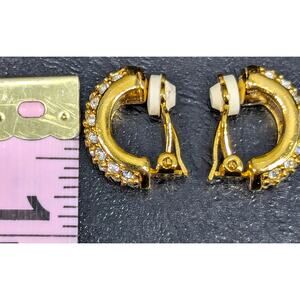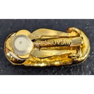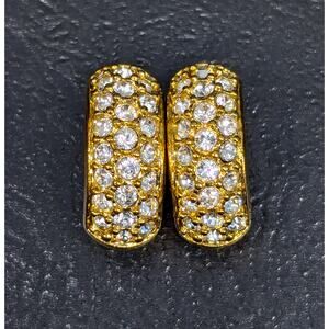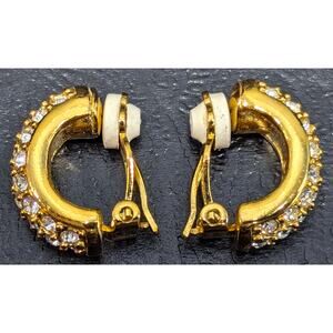 Swarovski Earrings, Signed, Gold-Tone, Pave Crystals, Half Hoop Clip-on
