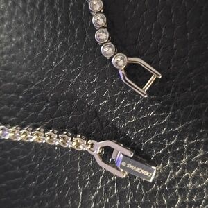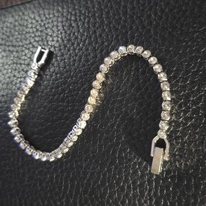 This elegant silver tennis bracelet adds a touch of sophistication to any outfit. Perfect for any occasion.