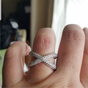 Swarovski Elements 925 Silver Infinity X Contemporary Ring NEW