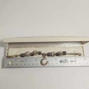 Swarovski Elements Charm Bracelet Horseshoe Silver Tone Beads Crescent Box Lucky