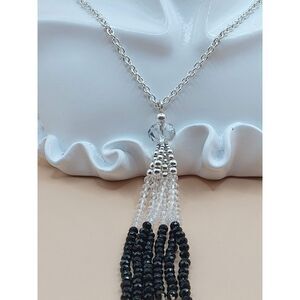 Swarovski Elements Lariat Tassel Necklace Black Silver