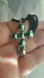 A very unique cross made with authentic Swarovski crystals in a rare color that changes depending on how the light hits it!