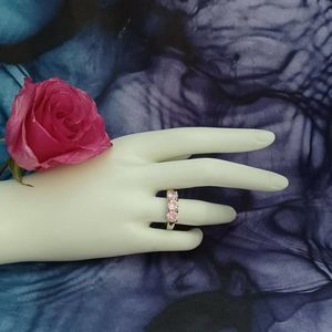 Picturing a plated 18K gold Swarovski Crystal ring size 7.5