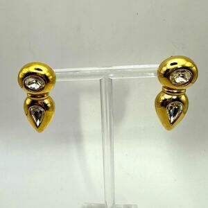 Swarovski Gold Earring SAL Statement Glam Vintage Retro Pierced Bridal Jewelry