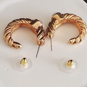 Swarovski gold plated hoop earrings have a single crystal in a rope design. Excellent condition. 1 inch long.