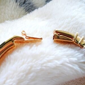 This exquisite Swarovski bracelet showcases a harmonious blend of gold and silver tones, embellished with a continuous line of shimmering crystals. The hinged design ensures effortless wearability, while the prong setting accentuates the brilliance of each stone, offering a timeless elegance to any jewelry collection.
