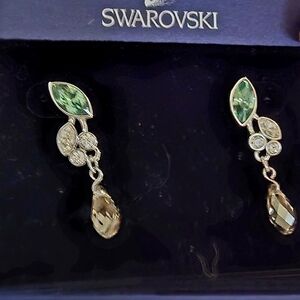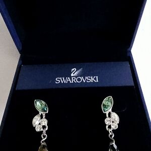 Elegant Swarovski drop earrings featuring stunning green and silver tones. Perfect for adding a touch of sophistication to any outfit.