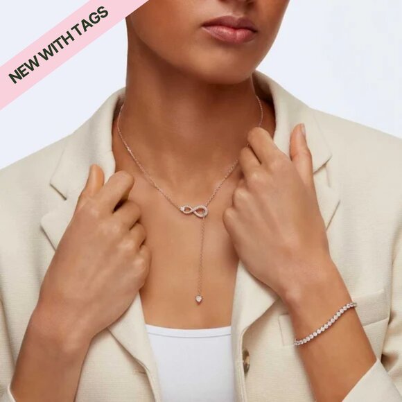💎Swarovski Hyperbola Y necklace Infinity, White, Rose gold-tone plated NIB💎