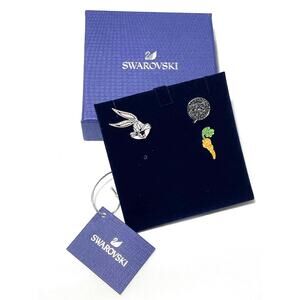 Swarovski new Looney Tunes collection, it features iconic character Bugs Bunny, a carrot, and a speech bubble saying 'What's Up Doc?', all embellished with pave. Plated in rhodium, this set would make a fun gift for someone special.