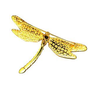 This stunning Swarovski large dragonfly brooch features gold-tone accents and dazzling crystals, designed to make a statement with any outfit. Measuring 3 inches wide, it's a perfect accessory for any collection.