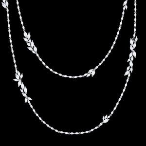 Inspired by frosty winter leaves and fine jewelry, this Swarovski necklace exudes timeless elegance with its rhodium plating and white sparkle, including a special swan wing-shaped cut. It is fitted with a new integrated closure for a seamless finish.