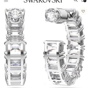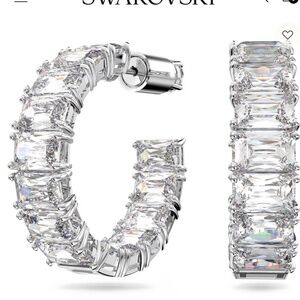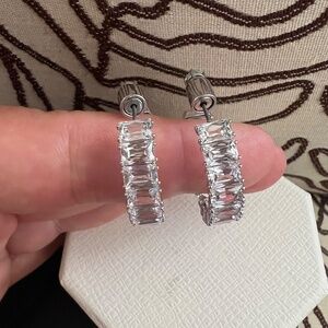 A classic hoop design with a dazzling twist, this elegant pair features a uniform row of octagon-cut stones cradled in a fine, rhodium-plated frame. Adding just a touch of everyday magic to any look – day or night. These earrings are part of the Matrix family, designed by Creative Director Giovanna Engelbert for Collection III.
