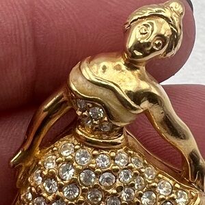 Swarovski Moveable Crystal enamel Ballerina Brooch Pin Vintage