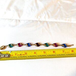 Vintage. Pretty bracelet with colorful crystals cradled by bands of gold tone.