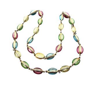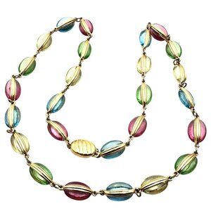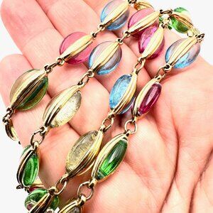 Swarovski Multicolor Crystal Necklace Gold Tone Swan Signed 22 Inch Pastel