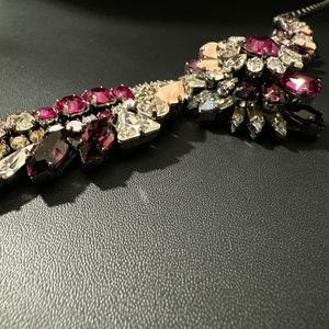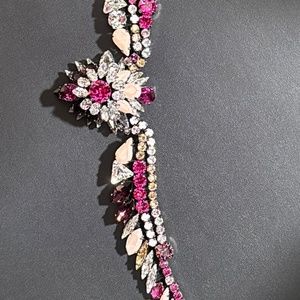 Light Pink, purple, hot pink, clear, and champagne colored crystals on chain. Dramatic so if you can't handle attention this piece isn't for you.