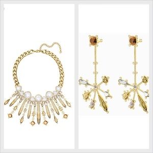 Swarovski Odyssey Collection Necklace,Matching Two Way Earrings NWT BOX Gold