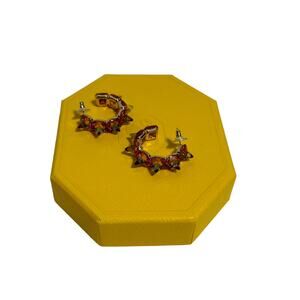 Pyramid cut crystals are layered on cushion cut crystals to create a dynamic take on the classic hoop. Striking the balance of refined yet modern and edgy yet beautiful, this statement pair is expertly crafted with a gold-tone plated finish. Wear it solo, or styled with the matching choker necklace for a bold evening look. These earrings are part of the Ortyx family, designed by Creative Director Giovanna Engelbert for Collection I.