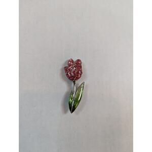 Swarovski Pink Tulip Pin Green Enamel New in Original Box Outer Sleeve crystal