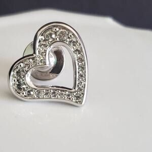 Swarovski Rhodium Plated Heart Tack Pin with Push Back Closure