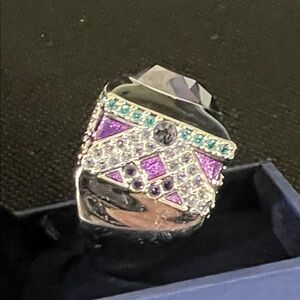 Stunning Swarovski ring with a heart-shaped purple gem. Set in sleek rhodium. Ideal for adding elegance. Good condition, minimum wear. Small chip on top.