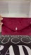 Luxurious ruby velvet clutch with sparkling Swarovski crystal accent. Ideal for special occasions. EUC