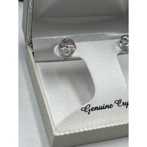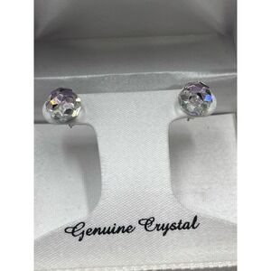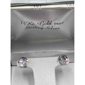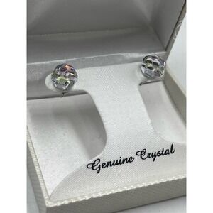 Swarovski SAL Vintage AB Crystal Disco Ball Stud 14k over 925 Earrings in Box