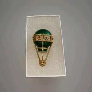 Swarovski Sign Emerald Green Enamel ,Crystal Rhinestone Hot Air Balloon Brooch