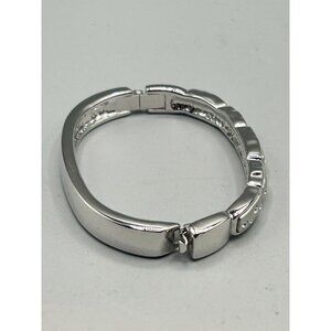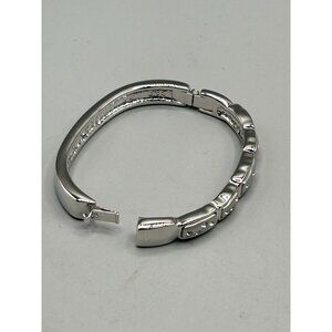 Swarovski Signed Hinged Bangle Bracelet Silver Color with Clear Crystals