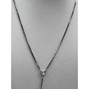 Swarovski Signed Rhodium Sterling Silver Box Chain Crystal Briolett Necklace