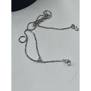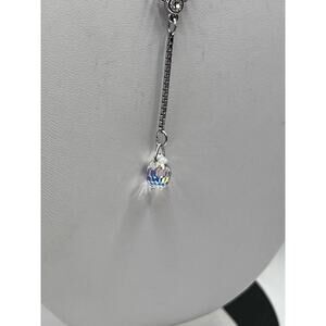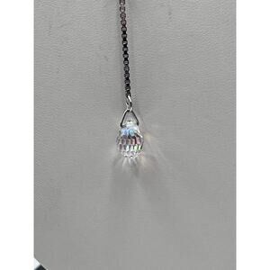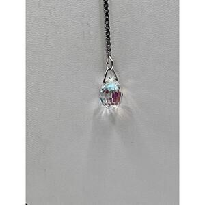 Beautiful rhodium plated sterling silver box chain adorned with a Beautiful kaleidoscope Swarovski crystal at the center of the "y" that reflects the colors around often reflecting a rainbow. The adjustable closure ends with the signature Swarovsky crystal swan logo.