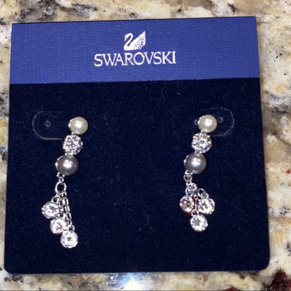 Swarovski Signed Swan Pearl Silver Crystal Earring