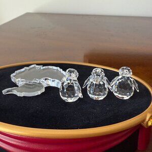 Swarovski Silver Crystal Baby Penguins Figurine Set w/ Ice Box & COA Retired