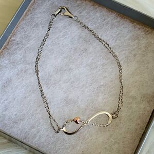 Swarovski Silver Double Chain Infinity w/ Crystals & Rose Gold Heart Bracelet!