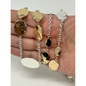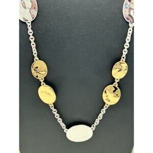 Swarovski Silver and Gold Tone Hammered Disc Necklace