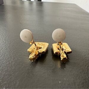 Swarovski Swan Couture Pave Crystal Gold Art Deco Drop Dangle Clip On Earrings