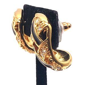Swarovski, Swan logo, vintage earrings, enamel earrings, crystal earrings, huggie hoops, statement jewelry, 80s jewelry, 90s jewelry, gold tone