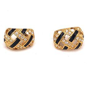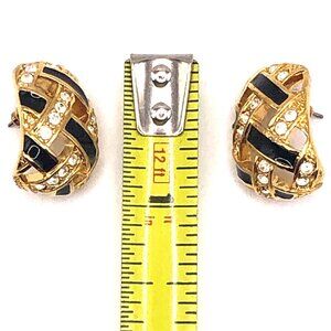 Add timeless sparkle to your collection with these authentic Swarovski earrings, crafted in gold-tone metal with a bold black enamel basket-weave design accented by brilliant clear Swarovski crystals.