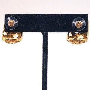 Swarovski Swan Logo Gold Tone Black Enamel Crystal Pierced Earrings