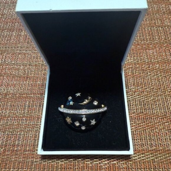 Swarovski Swan Signed Black Enamel Crystals Celestial Planet Brooch Stars Moon