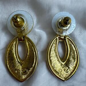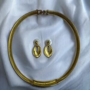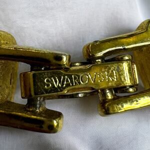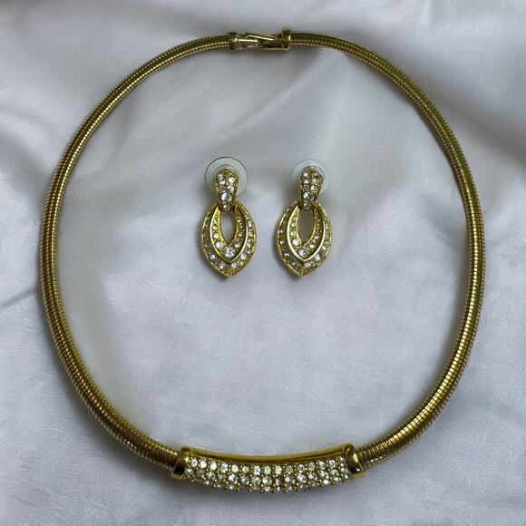 Gorgeous Vintage 90s Swarovski Swan Signed Pave Austrian Crystal Collar Necklace and Earrings Jewelry Set. Absolute power set. So glamorous and can be worn with so many styles for so many different occasions. Made with Yellow Gold Plated Metal. See pictures for measurements.