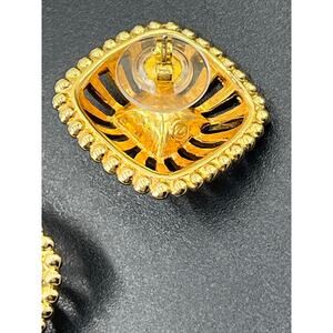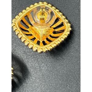 Swarovski earrings featuring a square, red central stone surrounded by a gold-toned, textured setting.