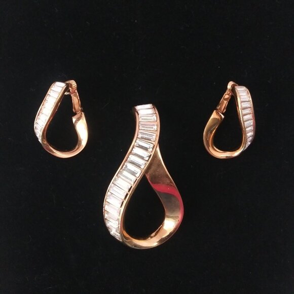 Swarovski Vintage Infinity Drop Austrian Crystal Brooch And Earrings Baguettes
