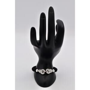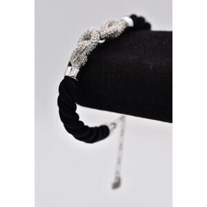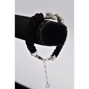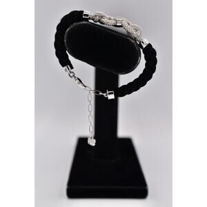 Swarovski Vintage Pave Crystal Bracelet Black Rope Rhinestone Swan Signed BinO