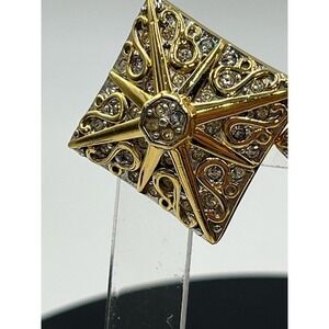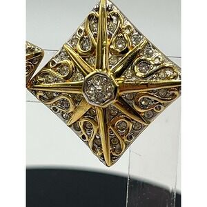 These vintage Swarovski clip ons earrings are a beautiful addition to any jewelry collection. The square design features a stunning swan decor adorned with sparkling crystals. Crafted with high quality materials, these earrings are perfect for any occasion. The clip on closure esures a comfortable fit for all-day wear. Add a touch of elegance to your look.